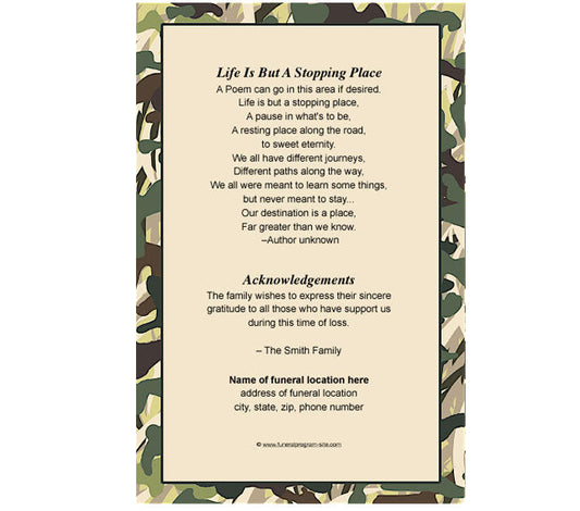 Camouflage 4-Sided Graduated Funeral Program Template