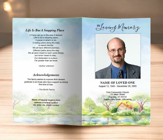 River Watercolor Funeral Program Template