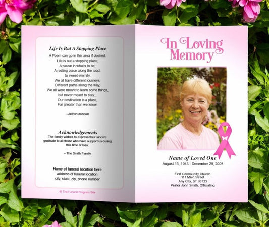 Breast Cancer Pink Ribbon Funeral Program Template