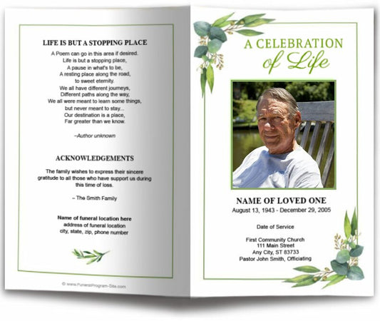 Eucalyptus Watercolor Funeral Program Template