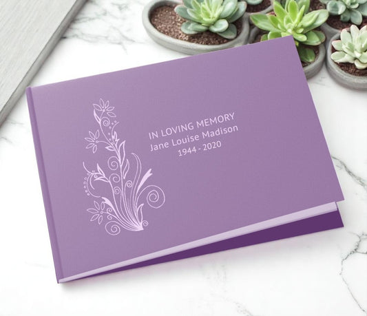 Sweet Flowers Landscape Linen Funeral Guest Book