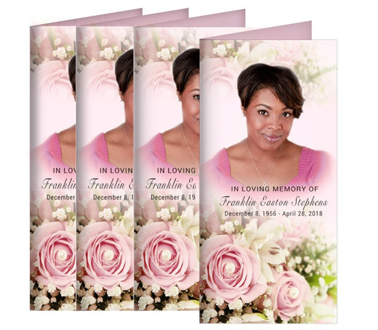 Pink Roses Long Fold Program Design & Print (Pack of 50)