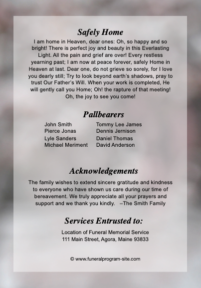 Rosy 4-Sided Graduated Funeral Program Template