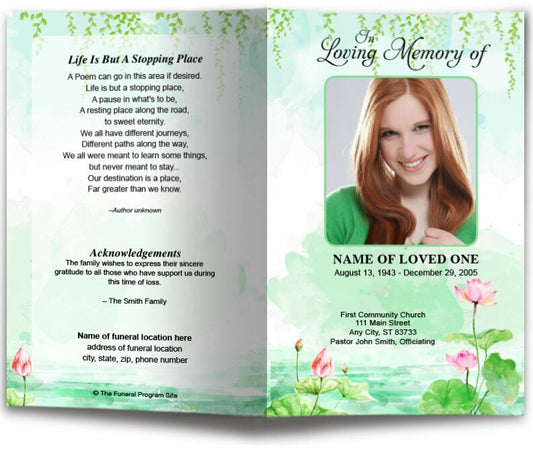 Water Lilies Watercolor Funeral Program Template