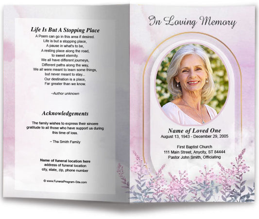 Blush Watercolor Funeral Program Template