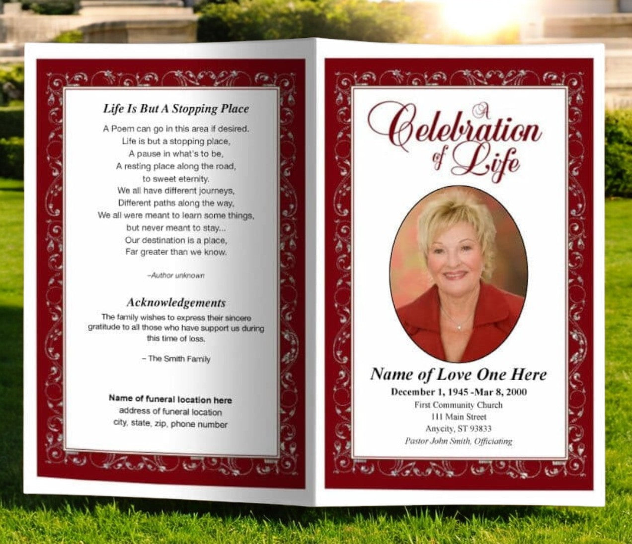 DIY funeral. bulletin templates for download immedlately after purchase. Use Microsoft Word, Publisher, Apple Pages or Google Docs to make your personalized edits. A great alternative to making your own funeral bulletin without creating it from scratch. Do-it-yourself funeral bulletin templates empower families to personally create a touching tribute to their loved ones, combining convenience with customization. These templates, often available for download from various online platforms, provide a user-friendly framework that anyone can modify to include photos, biographies, favorite quotes, and the order of service. This DIY approach is particularly appealing to those who wish to add a deeply personal touch while managing costs, as it allows for complete control over the design process. With comprehensive instructions and editable fields, families can produce a professional-looking bulletin that honors the deceased in a very intimate and meaningful way.