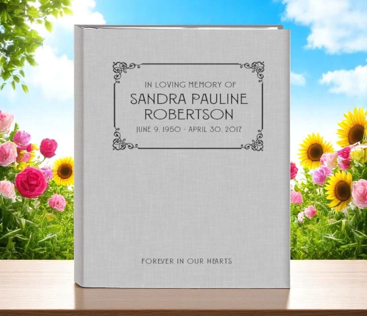 Designed to capture heartfelt messages and signatures from family and friends, the Forever In Our Hearts Linen Funeral Guest Book serves as a meaningful keepsake. Its high-quality craftsmanship ensures durability, preserving memories for years to come. This guest book is a touching way to commemorate a loved one and celebrate their lasting impact.
