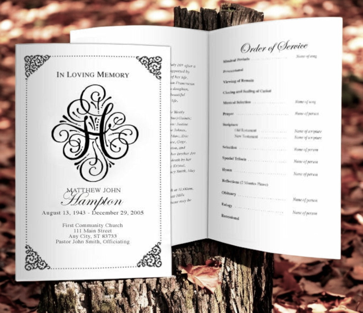 Monogram H Funeral Funeral Program Template