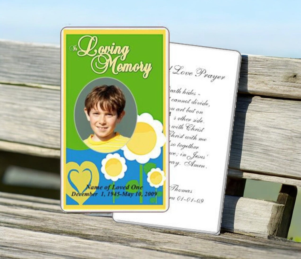 The Playful Prayer Card Template is perfect for funeral services, memorial gatherings, or personal remembrance. Its cheerful and vibrant theme offers comfort and warmth, ensuring that a beloved child’s memory is honored with love and tenderness. Whether used with or without a photo, this beautifully designed prayer card serves as a lasting tribute, celebrating the precious moments of a young life forever remembered.